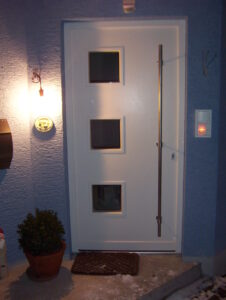 Die Zuverlässigkeit und Sicherheit der Türen garantieren auch die als Standard montierten 3-Riegel oder 5-Riegel Schlösser der Firma VBH als auch Antieinbruchs 3-Segmentscharniere. Auf Wunsch des Kunden besteht auch die Möglichkeit der Montage von zusätzlichen Schutzvorrichtungen in den Beschlägen. Die Dichtungen und Aluminiumschwellen der Firma VBH beschützen Sie vor dem Eindringen von Kälte und Feuchtigkeit in Ihr Haus.